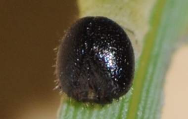 (参考) 孵化後間もない幼虫(1齢、2.5〜3.7mm、ススキ) 2013年8月19日 撮影 長野県の高原 母蝶採集 静岡市駿河区 飼育 個体1:早いものが孵化しました。まず卵殻を食べ、うろうろし始めたときに、新しい葉に移したところ、しばらく歩き回った後、葉裏に糸を張りました。本来は葉表です。歩いているときは長く伸びて3.7mmもありました。 トップページへ |
