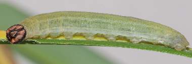 | ■越冬態 | 中齢幼虫 | ■食草・樹 | ススキが主で多くのイネ科、ショウジョウスゲなどスゲ類、ササ類も。 |