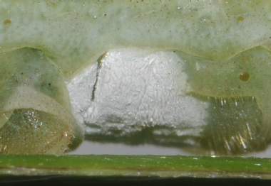 (参考) 産卵後間もないコキマダラセセリの卵(ススキ) 2013年8月12日 撮影 長野県の高原 母蝶採集 静岡市駿河区 飼育 卵の拡大です。拡大すると細かい網目模様があるのが分かります。近似種のアカセセリとは形がかなり違います。 トップページへ |