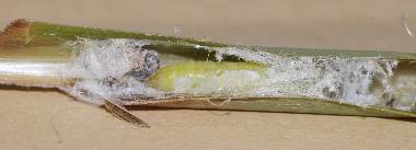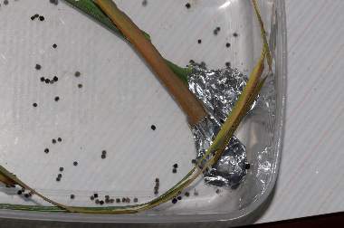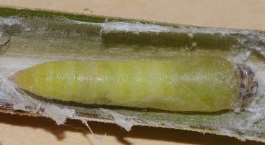 (参考) 蛹化のための巣(ススキ) 2013年10月14、15日撮影 長野県の高原 母蝶採集 静岡市駿河区 飼育 個体1:巣の中を覗いてみると、多くのセセリと同様に白い粉状のものが付いていました。 トップページへ |