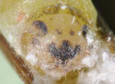 (参考) 脱皮後間もない幼虫(5齢、12.0mm、ススキ) 2013年9月15日 撮影 長野県の高原 母蝶採集 静岡市駿河区 飼育 個体1:1週間でわずか2mmですが少しずつ成長しています。ベランダの幼虫と同じような顔つき(頭部模様)になりました。 トップページへ |
