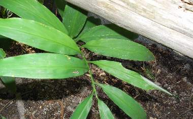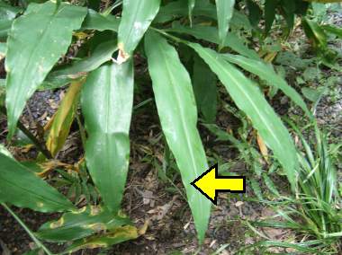 (参考) 卵(ミョウガ) 2007年9月23日 京都市北区 おそらく産まれてそれほど時間が経っていない卵と思われます。赤い色が特徴的です。矢印の葉の裏にありました。 トップページへ |