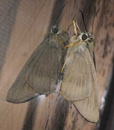 | タイワンアオバセセリは、通常は八重山諸島のみに見られる大型のセセリチョウです。アオバセセリという名がついていますが、正真アオバセセリのように青色系統の模様はなく、地味な蝶です。八重山地方では、ビタミンCで有名になった果物のアセロラの害虫としても知られています。私は成虫についてはまだ1度だけ遠くから撮った事があるだけですが、このたび幼虫を入手してアセロラとコウシュンカズラを用いて飼育しました。 |