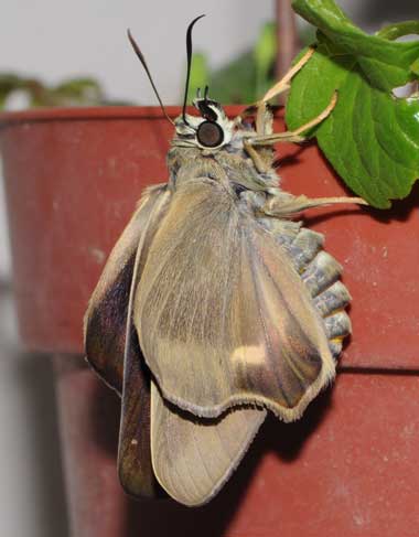 (参考) タイワンアオバセセリの吸蜜または静止(ランタナ) 2010年3月15日 沖縄県石垣島 ホリイコシジミの食草であるランタナが多いところで、一瞬止まったところを撮ることができましたが、この一枚撮っただけであっという間にどこかに飛んで行ってしまいました。 トップページへ |