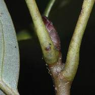 アカシジミの卵と環境 2005年11月21日 大阪府豊能町 登山道脇のアラカシの新枝(株が切られて出てきた枝)の1mぐらいの高さの小枝の頂芽に1卵見つかりました。冷蔵庫に保管し、下の卵と同じようにしましたが、残念ながらなかなか孵化しませんでした。そこで、カミソリで卵の上部を切ったところ無事に孵化してくれました。 トップページへ |