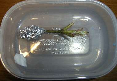 幼虫(1齢、2mm、脱皮中?) 2006年3月24日 兵庫県猪名川町産 大阪市淀川区飼育 芽から出てきて、又のところに静止しています。尾部あたりカビが生えているようで、脱皮前の休眠という思いと、死んでしまったのではないかというあきらめが混じってみていました。 トップページへ |