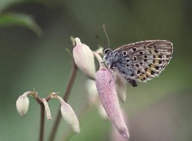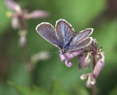 1991年7月27日 長野県上高地 槍ヶ岳の登山基地である上高地では、ヒメシジミに混じってアサマシジミが見られます。しかし、最近(2012年)では非常に稀になっているそうです。 トップページへ |