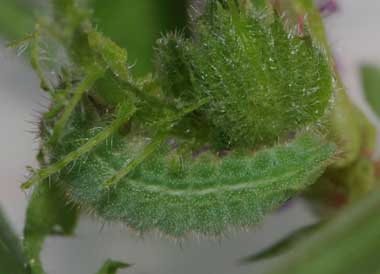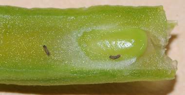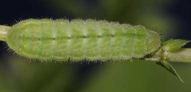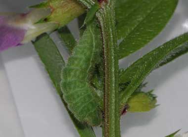カラスノエンドウを食べるアサマシジミの幼虫(4齢、4月20日で11.7o)