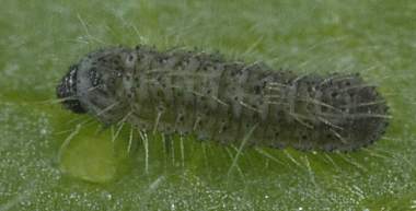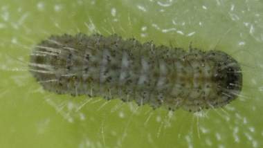 脱皮後少し成長した幼虫(3齢(6.6mm)、ナンテンハギ)