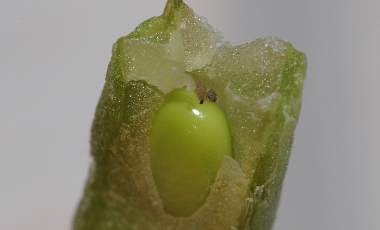 アサマシジミの前蛹(10.7mm、ナンテンハギ)