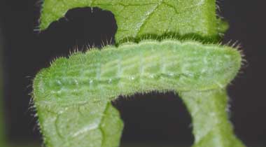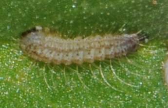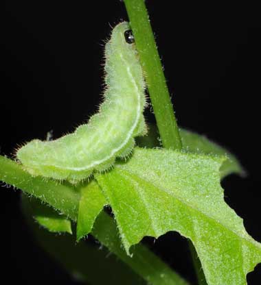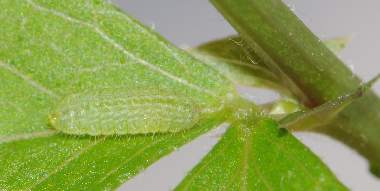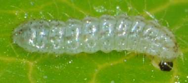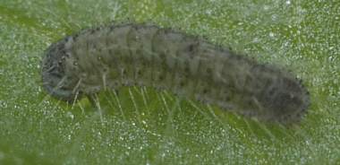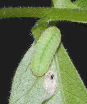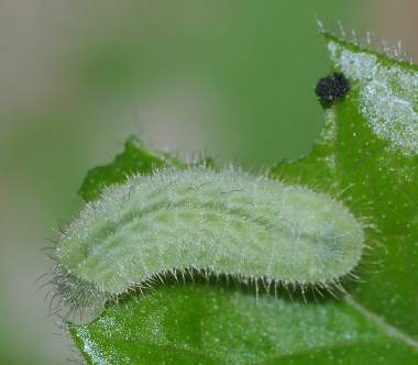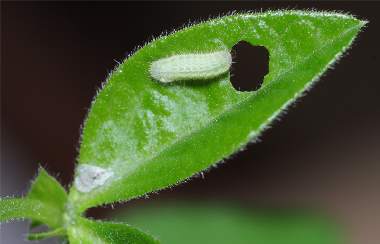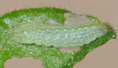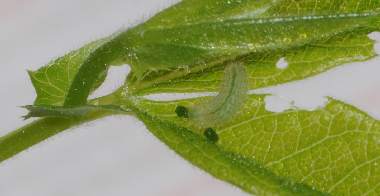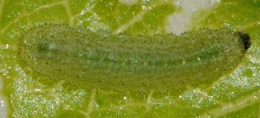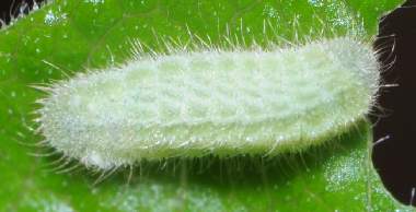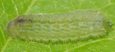 脱皮後少し成長した幼虫(3齢、6.0mm、ナンテンハギ)