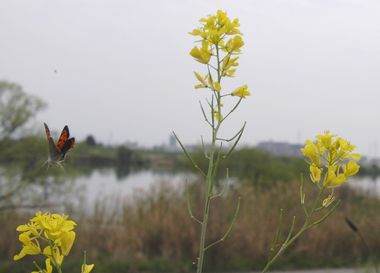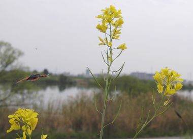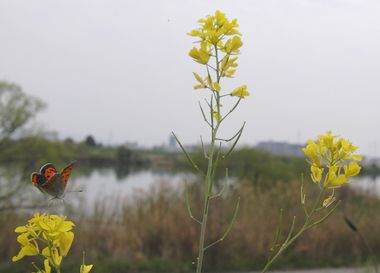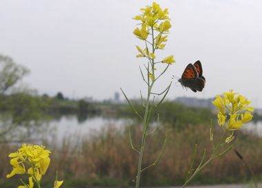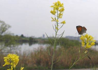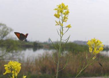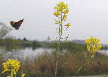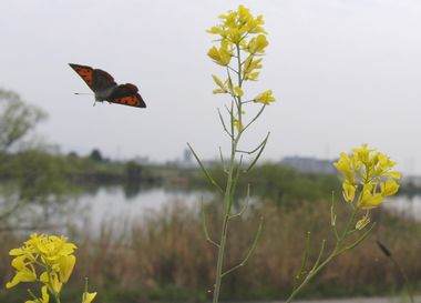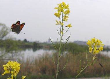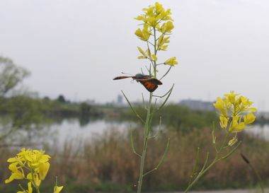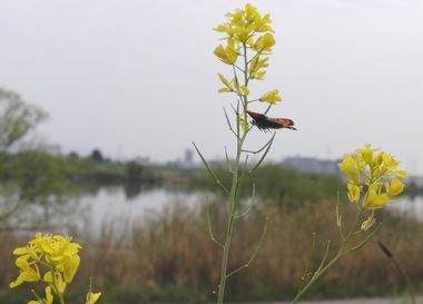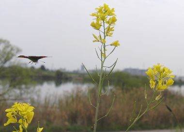 2008年4月13日 大阪府摂津市一津屋 EX-F1、パスト連写(60fps、0.5s)、ISO200、F3.3、1/4000s 淀川の河川敷です。時々セイヨウカラシナの菜の花で吸蜜します。たまたま別の花に飛び移ったところを撮ることができました。 トップページへ |