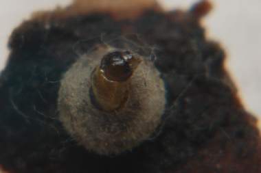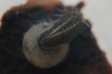 (参考) 脱皮直後の幼虫(4齢、9.0mm) 2011年5月3日撮影 岡山県新見市 産 大阪市 飼育 終齢(4齢)になり、その気門を拡大すると白いのでおそらくベニモンカラスシジミだと思いますが、ミヤマカラスシジミかもしれません。 トップページへ |