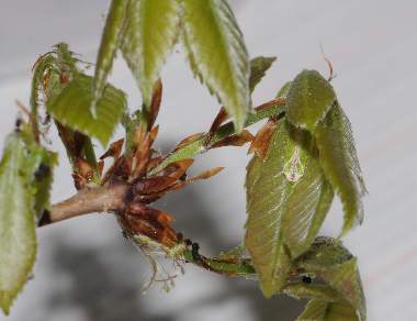 (参考) 開きかけた葉の中で眠に入る幼虫(2齢、4.0mm) 2012年4月9日撮影 北海道稚内市 採卵 静岡市駿河区 飼育 新葉に擬態しているのでしょう。 トップページへ |