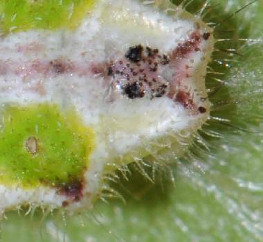 (参考) 成長した幼虫(2齢、4.5mm) 2012年4月7日撮影 北海道稚内市 採卵 静岡市駿河区 飼育 緑色の部分がはっきりしてきました。また、尾端が広がった感じになりました。 トップページへ |