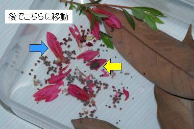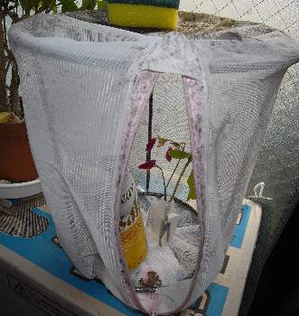 (参考) 強制採卵(アセビ、ツツジ) 2010年5月5日撮影 静岡市駿河区 飼育 2010年5月3日母蝶採集 兵庫県豊岡市 産卵行動を見せていた母蝶を採集し、上に示した卵の付いていたアセビの花と、その近くにあったツツジの花を小瓶に挿し、洗濯網の中に入れておいたところ、まもなく次々に産卵しました。最初はアセビのみでしたが、ツツジの花弁の落下跡にも産み始めました。この写真ではツツジに産卵中です。 トップページへ |