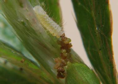 (参考) 孵化直前のコツバメの卵 2010年5月5日夜撮影 静岡市駿河区 飼育 兵庫県豊岡市 産 孵化前には卵は白くなり、少し幼虫が透けて見えます。 トップページへ |