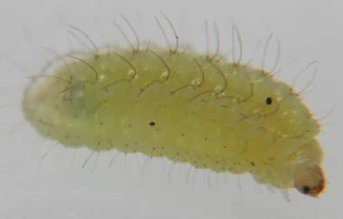 (参考) 脱皮直後の幼虫(2齢、2.2mm) 2010年5月8日朝撮影 静岡市駿河区 飼育 兵庫県豊岡市 産 個体2:サツキの葉のみを食べている個体1よりは成長がずっと早いです。 トップページへ |