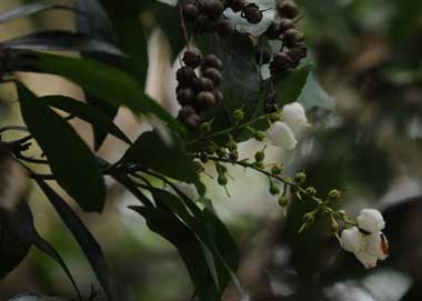 (参考) 環境 2010年5月3日 兵庫県豊岡市 林道脇の崖に垂れ下がるように、アセビが咲いていました。この日、花のないネジキなどのツツジ科にまとわりつくように飛んだりとまるコツバメが目立ちました。産卵は見られなかったのですが、このアセビには卵が見つかりました。 トップページへ |