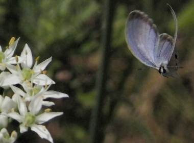2008年8月30日 大阪市淀川区 自宅ベランダで、休息後の飛翔です。Casio EX-F1パスト連写。♀は、撮る方向によってはミドリシジミ類♀のB型のような青い輝きを見せます。アンダー気味に撮ると青が強調されて非常にきれいです。 トップページへ |