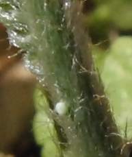 2008年11月22日 大阪市淀川区 1匹だけ、側芽のひだの間に頭を突っ込んで動かないものがいます。尾部に液体が見られ、何か食べているのかもしれません。11月24日に見るといなくなっていました。一方で、茎に頭を突っ込んでいるものも見られます。 トップページへ |