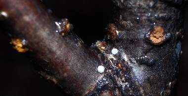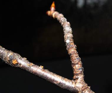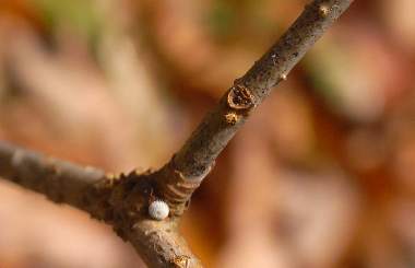 (参考) メスアカミドリシジミの卵と産卵位置 2009年秋 滋賀県北部 滋賀県北部山地で、谷など探索して見つけた卵です。サクラ類(ヤマザクラなど)の主として小枝の基部に見つかりました。卵は白くてヒダが多く大きく目立ちます。これでは小鳥の越冬用の餌になるだけのような気がします。 トップページへ |
