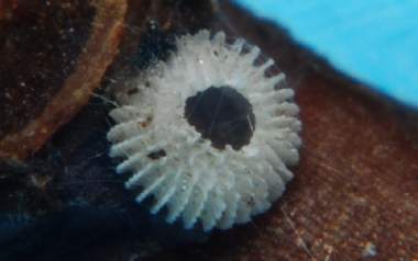 (参考) 孵化間もない幼虫(1齢、1.8mm)と孵化殻 2010年2月3日夜撮影 静岡市駿河区 飼育 2009年秋 滋賀県北部 採卵 この日の朝卵を見ると、精孔に穴が開き始めていました。楽しみにして帰宅するとやはり1卵孵化していました。予想どおり結露した水滴に捕捉され動けない状態でした。これをそっとカワヅザクラの蕾に付けてやりました。しばらく蕾の表面をうろうろした後、花芽の中にあった3つの蕾の間に潜って食いついたようです。 トップページへ |