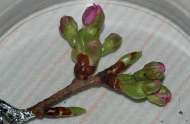 (参考) 幼虫(1齢、3.6mm) 2010年2月6日撮影 静岡市駿河区 飼育 2009年秋 滋賀県北部 採卵 幼虫は成長して、色が白っぽくなってきました。桜の花芽の成長も分かります。切り取っている花芽ですが、容器の中でどんどん成長しています。幼虫もその蘂を食べているようで、糞が黄色です。 トップページへ |