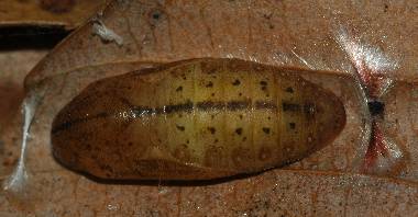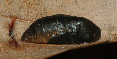 (参考) 蛹(羽化前兆) 2004年8月6日 神奈川県横浜市港北区日吉産 大阪市淀川区飼育 羽化直前には黒くなります。 トップページへ |