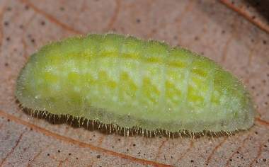 (参考) 成長した幼虫(2齢、5.3mm、オニグルミ) 2012年4月20日撮影 兵庫県北部 採卵 静岡市駿河区 飼育 常に葉裏にいます。 トップページへ |