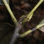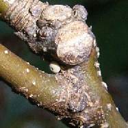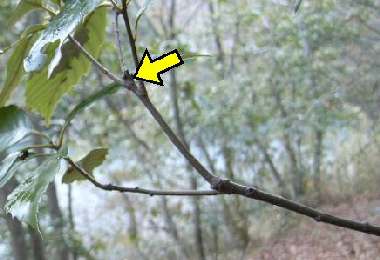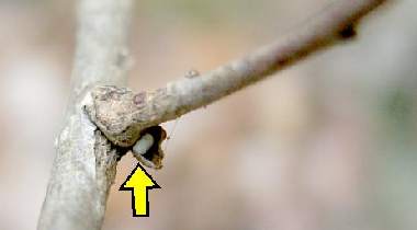 2005年12月28日 兵庫県猪名川町 里山の林道脇に、樹高1mぐらいのコナラが1本生えており、1卵見つけました。他に、去年の孵化殻が1卵。見つけたときはオオミドリシジミという確信はありませんでしたが飼育により確かめられました。 トップページへ |