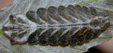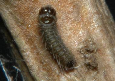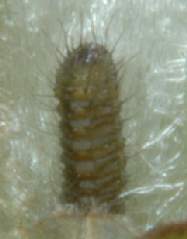 (参考) 幼虫(3齢?、4.5mm)と飼育の様子 2006年3月24日 兵庫県猪名川町産 大阪市淀川区飼育 模様が変わっているので3齢になっているのかもしれません。頭が黒くないので、脱皮した直後と思われます。 トップページへ |
