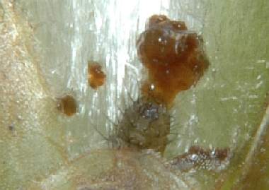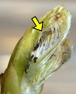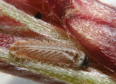 (参考) 幼虫(1齢) 2006年3月20日 兵庫県猪名川町産 大阪市淀川区飼育 アラカシの芽の中に潜って、食べています。 トップページへ |