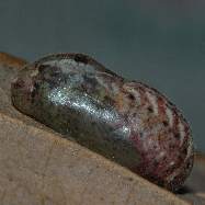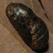 (参考) 蛹(12.3mm) 2006年4月15日14:11 兵庫県猪名川町産 大阪市淀川区飼育 一見、褐色の蛹ですが、翅になる部分は半透明です。そこで窓からの透過光とストロボ光で撮り比べてみました。 トップページへ |