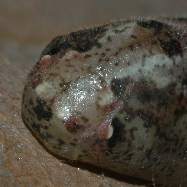 (参考) 前蛹 2006年4月15日1:12am 兵庫県猪名川町産 大阪市淀川区飼育 左が頭。4月12日には、容器の底に敷いていた枯葉の下に移動していました。だんだんと体が丸くなっていく感じです。この写真は、透明容器の底を通して写しているので画質はあまり良くありません。 トップページへ |