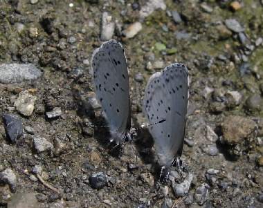 ルリシジミの吸水(夏型♂) 2009年5月30日 静岡市駿河区大谷 畑です。おそらく単なる吸水というよりは、肥料成分の何かを得ているのだろうと思います。新鮮な♂でした。 トップページへ |