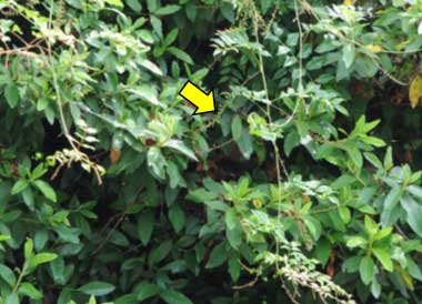 2005年7月24日 大阪府豊中市服部緑地公園 今春、ウラギンシジミの産卵を見たところです。おそらくナツフジの花房でシジミの幼虫を見つけました。ルリシジミという絶対の自信はありません。時々アリが接触していました。この近くの房でウラギンシジミの1齢幼虫と卵殻も見つかりました。 トップページへ |