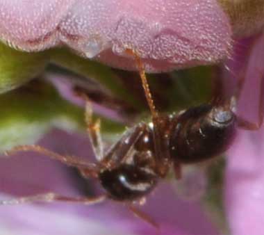 2015年6月27日 静岡市駿河区大谷 2週間前に多くの産卵が見られたハギです。見事に花に同化したルリシジミの幼虫がいました。アリが1匹だけ周りをうろうろしていました。尾端近くに蜜腺と、アリをよぶにおいを出す伸縮突起が見えます。 トップページへ |