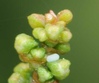 ルリシジミの産卵と卵(アレチギシギシ)