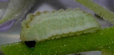 服部緑地公園のフジの花で見つけた幼虫の飼育記録です。 ルリシジミ1へ、ルリシジミ2へ。 |