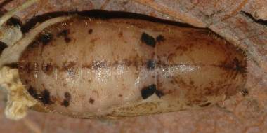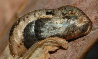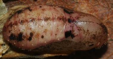 ルリシジミの蛹 2005年5月11日 大阪市淀川区飼育 蛹化後8日目。 |