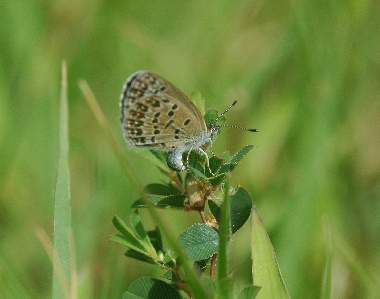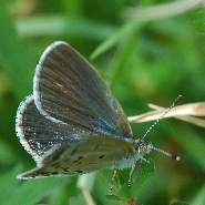シルビアシジミは、都市部でもごく普通に見られるヤマトシジミに似ていますが、大阪府内ではほぼ絶滅状態といわれています。しかしヤマトシジミに似ているために見逃されている可能性も高いと思われ、ぜひともこの蝶を確認されたらメールをお願いいたします。区別点は、裏面の紋の並びです。ミヤコグサ、シロツメクサ、ヤハズソウなどを幼虫が食べるため、河原や河川敷に多いと思われます。このホームページの対象範囲内では、2005年11月に、豊中市の服部緑地公園で初めて♂を見ることができました。ここでは主に、伊丹市の猪名川河川敷に生息するシルビアシジミを紹介します。環境はほぼ同じに見える尼崎市の猪名川や藻川で、数の増える9月や10月に観察を試みましたが、確認できていません。蝶がある場所に生息するということに、普通の人間には見えない何かが影響を与えているような気がします。自然保護の難しさを痛感します。蝶の保護においても、単に採集禁止にする→環境を保護する→その種が生き続ける必要条件は何かを研究して実践する、と進化すべきと考えます。なお、“宮崎の昆虫”によると、一説では(種の分類に関しては、あくまでも完全に説得力のある説明はないと思うのでこう記します)、シルビアシジミの本土亜種と琉球亜種(渡瀬線が境)がミトコンドリアDNAによる分子系統学研究により別種とされ、シルビアシジミとヒメシルビアシジミの2種に分かれました。ややこしいのは今までの和名(シルビアシジミ)と学名(Zizina otis)が別々の種に与えられたので、従来のシルビアシジミ(Zizina otis)がシルビアシジミ(Z. emelina)とヒメシルビアシジミ(Z. otis)に分かれました。このHPでは学名は併記します。 飛翔の様子はシルビアシジミの飛翔に載せてあります。 幼虫の生態や飼育の様子はシルビアシジミ2に載せてあります。 |