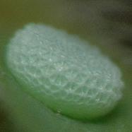 (参考)卵(ヤハズソウ) 2004年9月18日 兵庫県伊丹市 上と同じ個体の♀が別の株のヤハズソウに産んだ卵です。産まれた直後は、他の多くのシジミチョウ科の蝶と同様に薄青色です。 トップページへ |