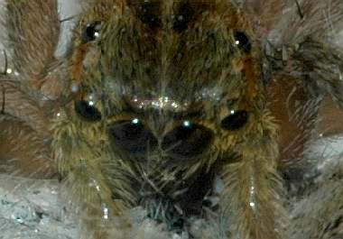 (参考)シルビアシジミを食うハエトリグモ 2004年11月11日 大阪市淀川区 アップで見るとかなり怖い顔をしているハエトリグモです。普段は家の害虫を退治してくれるいいヤツなのですが。 トップページへ |