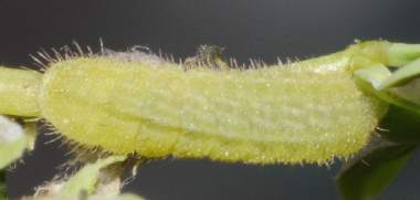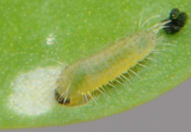 (参考) 孵化後間もないシルビアシジミの幼虫(1.0mm、ミヤコグサ) 2010年10月19日 朝撮影 静岡市駿河区 飼育 兵庫県加古川河川敷 産 既に白くなっていた卵からは採卵2日後に孵化しました。既に葉を囓って糞をしています。葉裏にも毛は全くないので、真性?のミヤコグサLotus corniculatus var. japonicus と思われます(毛のない外来種もありますので決定できません)。 トップページへ |