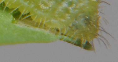 (参考)シルビアシジミの幼虫(2齢) 2004年9月23日 兵庫県伊丹市採卵 大阪市淀川区飼育 孵化後3日目の2齢(?)幼虫です(右が頭)。 トップページへ |