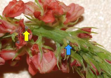 (参考) 卵(0.45mmΦ、タヌキコマツナギ) 2011年11月23日 沖縄県西表島 卵は蕾の奥の方に産まれます。静岡に持ち帰って撮影しました。この卵はその後人に譲りました。 トップページへ |