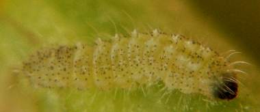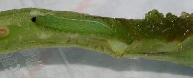 (参考) 幼虫(1齢、0.9mm、インゲン) 2010年3月16日 沖縄県西表島南風見 産 静岡市駿河区 飼育 個体3。すぐにインゲンの幼果に食いつきました。 トップページへ |
