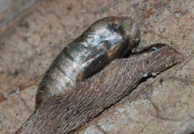 (参考) 前蛹(7.8mm) 2010年3月30日 沖縄県西表島南風見 産 静岡市駿河区 飼育 個体1。しばらくいろいろとうろうろした後、入れていたタヌキコマツナギの葉表で前蛹になりました。 トップページへ |