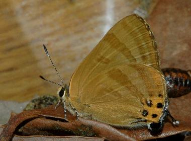 羽化まもないトラフシジミと後翅(夏型)
